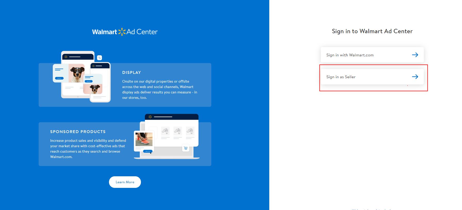 第 1 步:如圖1所示,在 Walmart Ad Center廣告平台上以賣家身份登錄