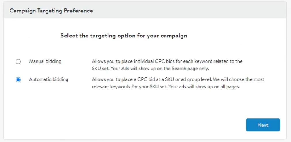 在設置Walmart廣告活動期間,你有兩種類型選擇——創建自動或手動廣告。為了獲得最大的曝光率,最好使用自動廣告;如果你希望能有更大程度的控製權,則手動活動是最佳選擇。在決定使用哪種廣告類型時,需要考慮你的目標。那自動廣告與手動廣告的區別是什麽?
