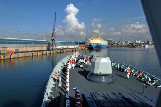 應坦桑尼亞(ya) 人民國防軍(jun) 海軍(jun) 邀請,完成亞(ya) 丁灣、索馬裏海域護航任務的中國海軍(jun) 第七批護航編隊“舟山”艦和“徐州”艦26日抵達坦桑尼亞(ya) 首都達累斯薩拉姆,開始為(wei) 期5天的正式友好訪問。